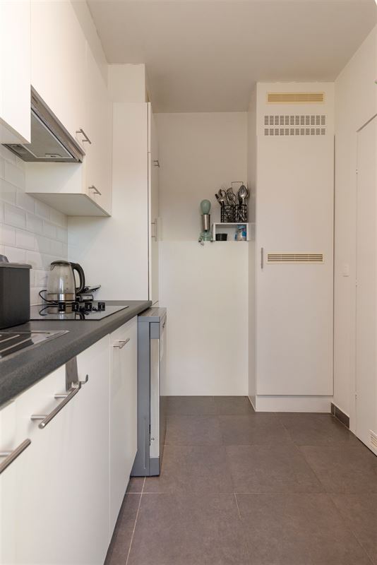 Je komt binnen in een ruime inkomhal voorzien van een gastentoilet. De ruime leefruimte is licht en stil dankzij de hoeklocatie. Aansluitend ligt de goed uitgeruste keuken die desgewenst kan opengemaakt worden. Verder beschikt het appartement over twee volwaardige slaapkamers en een badkamer met bad/douchecombinatie. Via beide kamers is er toegang tot het zuid gericht terras aan de achterzijde.